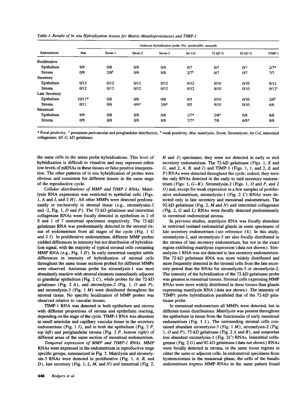 W H Rodgers, L M Matrisian, L C Giudice, B Dsupin, P Cannon, C Svitek, F Gorstein, K G Osteen