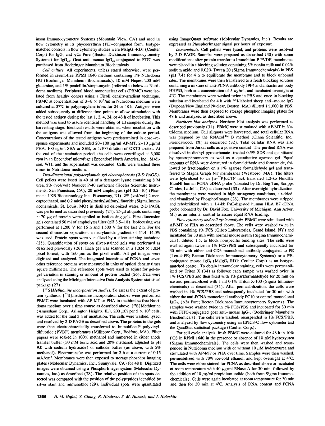 H M Haftel, Y Chang, R Hinderer, S M Hanash, J Holoshitz