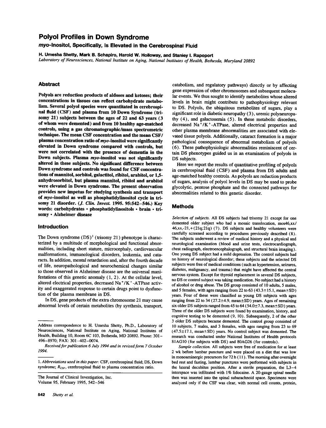 H U Shetty, M B Schapiro, H W Holloway, S I Rapoport