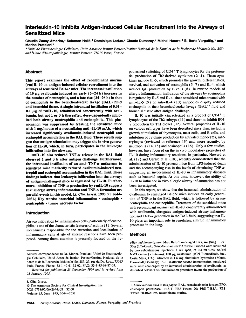 C Zuany-Amorim, S Hailé, D Leduc, C Dumarey, M Huerre, B B Vargaftig, M Pretolani