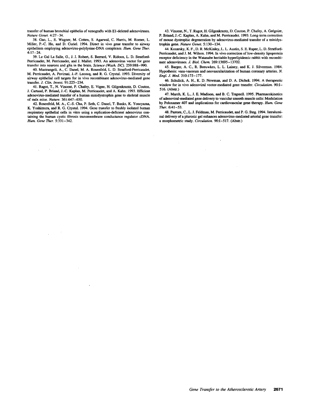 L J Feldman, P G Steg, L P Zheng, D Chen, M Kearney, S E McGarr, J J Barry, J F Dedieu, M Perricaudet, J M Isner