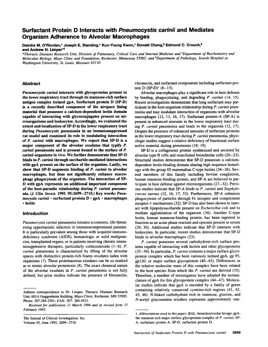 D M O'Riordan, J E Standing, K Y Kwon, D Chang, E C Crouch, A H Limper