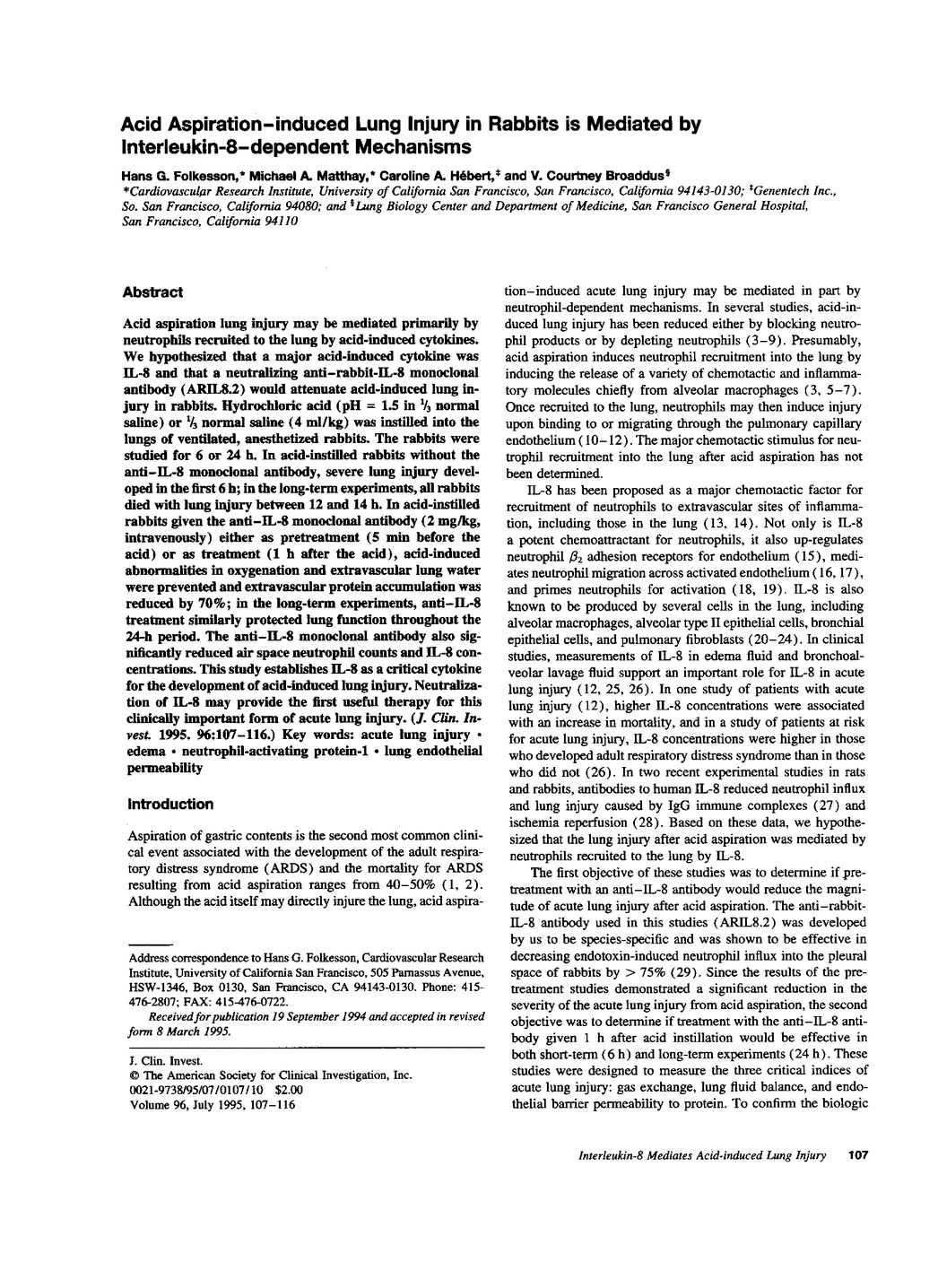 H G Folkesson, M A Matthay, C A Hébert, V C Broaddus