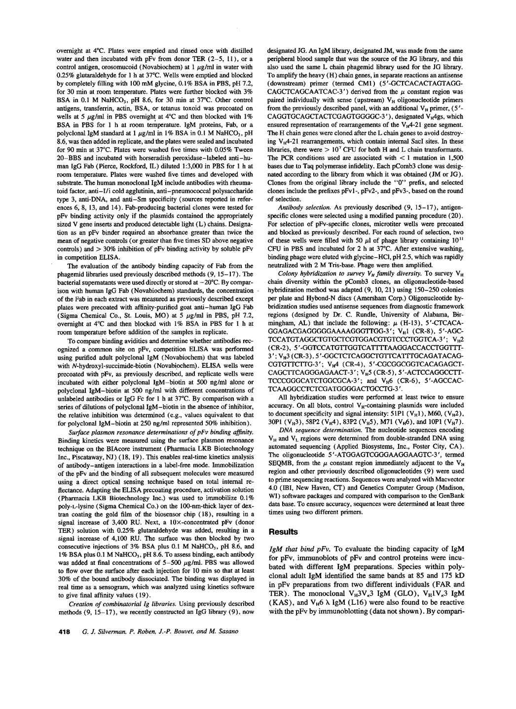 G J Silverman, P Roben, J P Bouvet, M Sasano