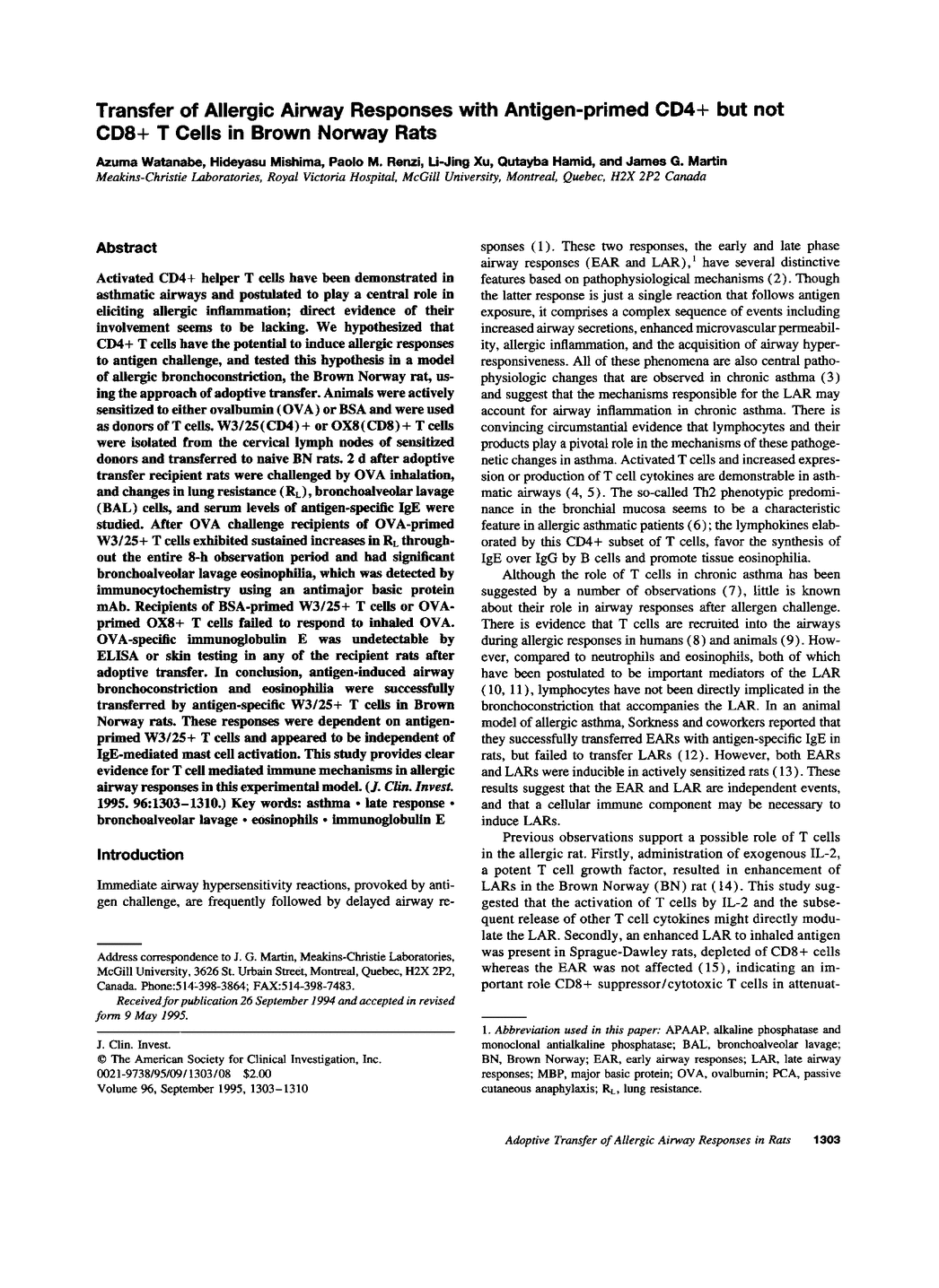 A Watanabe, H Mishima, P M Renzi, L J Xu, Q Hamid, J G Martin
