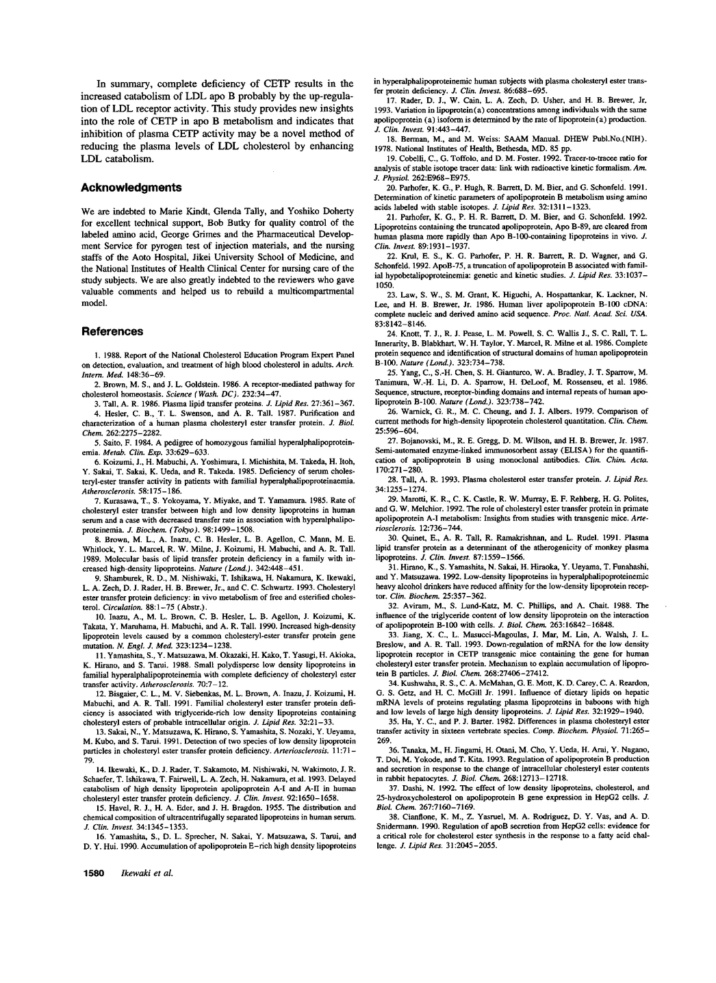 K Ikewaki, M Nishiwaki, T Sakamoto, T Ishikawa, T Fairwell, L A Zech, M Nagano, H Nakamura, H B Brewer Jr, D J Rader
