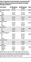 Table 2Comparison of clinical attributes in patients with CRC with low SOX9 gene expression versus patients with higher SOX9 gene expression