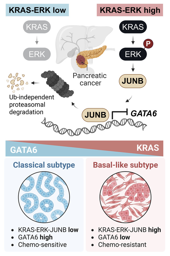 Oncogenic KRAS/ERK/JUNB signaling suppresses differentiation regulator GATA6 in pancreatic cancer