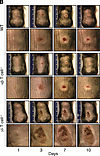 The authors became aware that in Figure 1B, the representative images for αβ T cell–/– (row 4, column 1 and row 3, column 2) were inadvertently duplicated from the representative images for WT (row 2, column 1, and row 1, column 2, respectively) and the representative image for WT (row 2, column 2) and representative image for αβ T cell–/– (row 4, column 2) were inadvertently interchanged. In addition, in Supplemental Figure 5, an incorrect image was used for the IL-1R–/– sample. The supplemental material has been updated with the correct Supplemental Figure 5A. The correct Figure 1B provided from the original source data, is shown below.