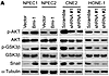 The authors became aware that in Figure 3A, the GSK3β blot for the NPEC2 cells was inadvertently duplicated in the CNE2 panel. In addition, in Supplemental Figure 6A, the representative image for 24-hour Bmi1 shRNA#2 + PTEN shRNA#2 (row 3, column 4) was inadvertently duplicated from the representative image for 24-hour Bmi1 shRNA#2 + PTEN shRNA#1 (row 3, column 3). The correct Figure 3A is shown below and an updated version of the supplemental material has been provided.